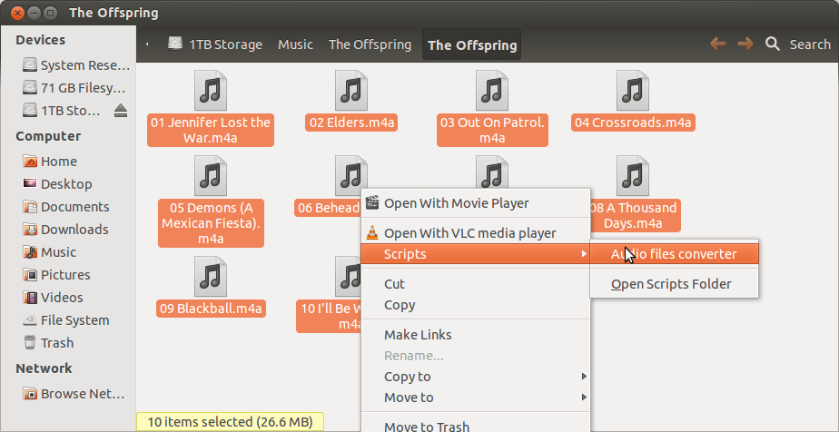 That’s it, restart nautilus, then right click on an audio file (or files) and select the script: